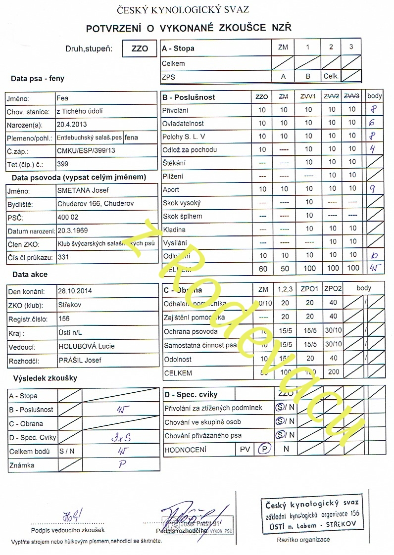 Náš výcvik a následnou zkoušku z poslušnosti jsme absolvovali pod vedením výcvikářů při ZKO Střekov v Ústí nad labem